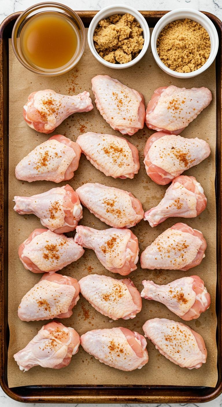 - Chicken wings: 2 pounds, split into flats and drumettes