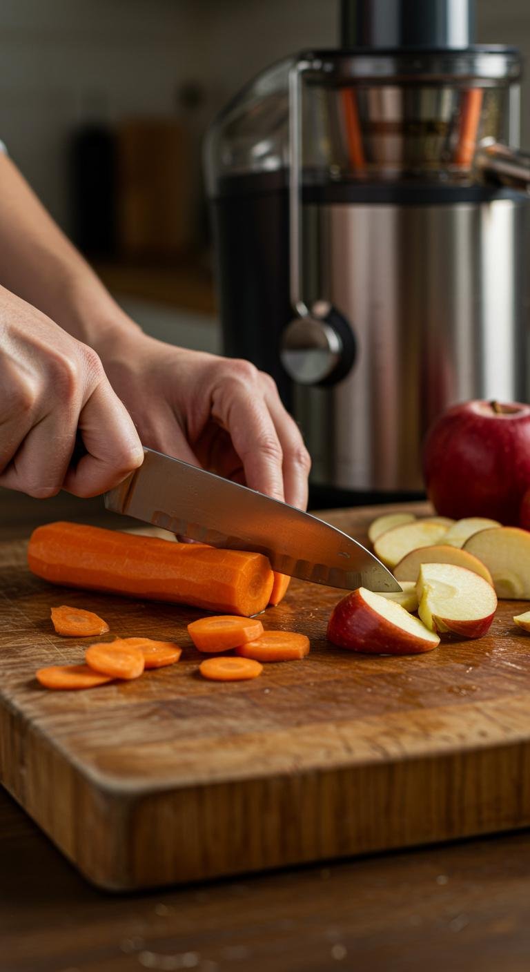 - Cut into manageable chunks: Your juicer will work better, and cleanup is easier.