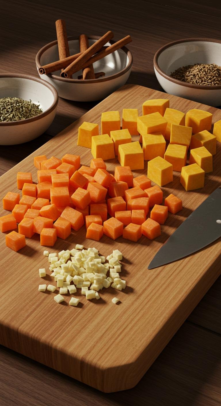 - Peel and chop uniformly: Cut root vegetables into roughly the same size (about 1-inch cubes) so they cook evenly.