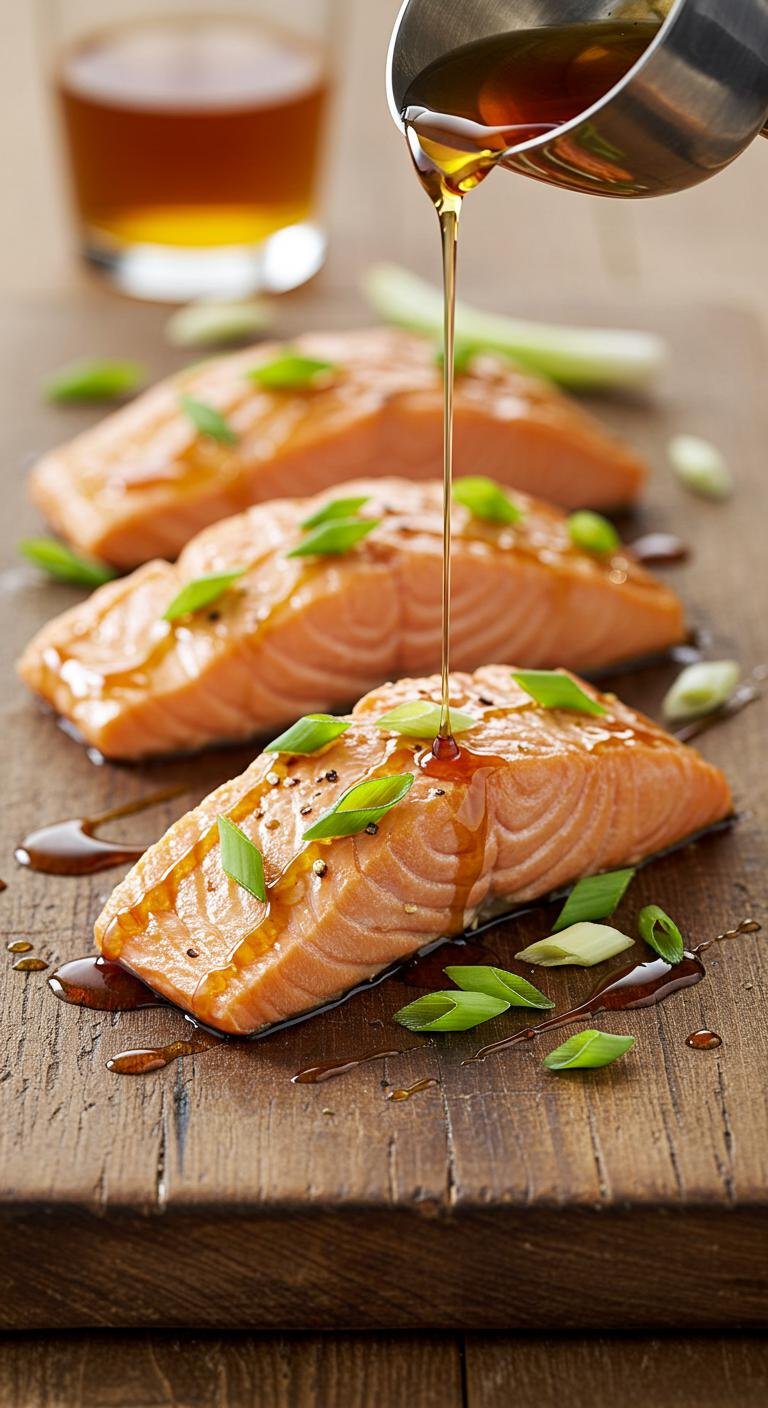 - Brush teriyaki sauce on salmon and sprinkle with sesame seeds.