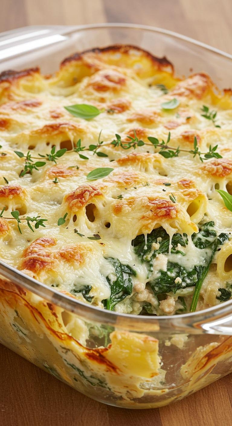 - Spread into a baking dish, top with remaining cheese, and bake at 375°F for 20 minutes.