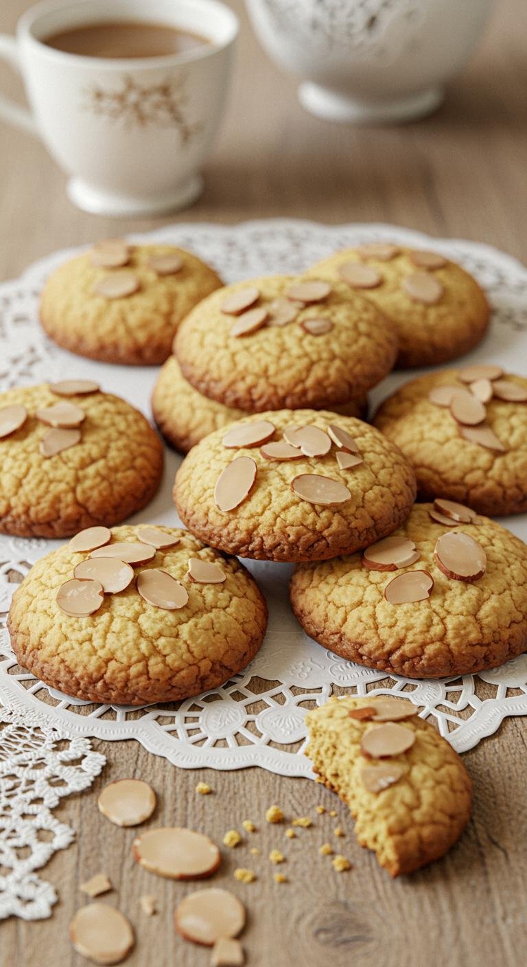 - Shape into balls, place on a baking sheet, and press slivered almonds on top. Bake at 350°F (175°C) for about 12 minutes.