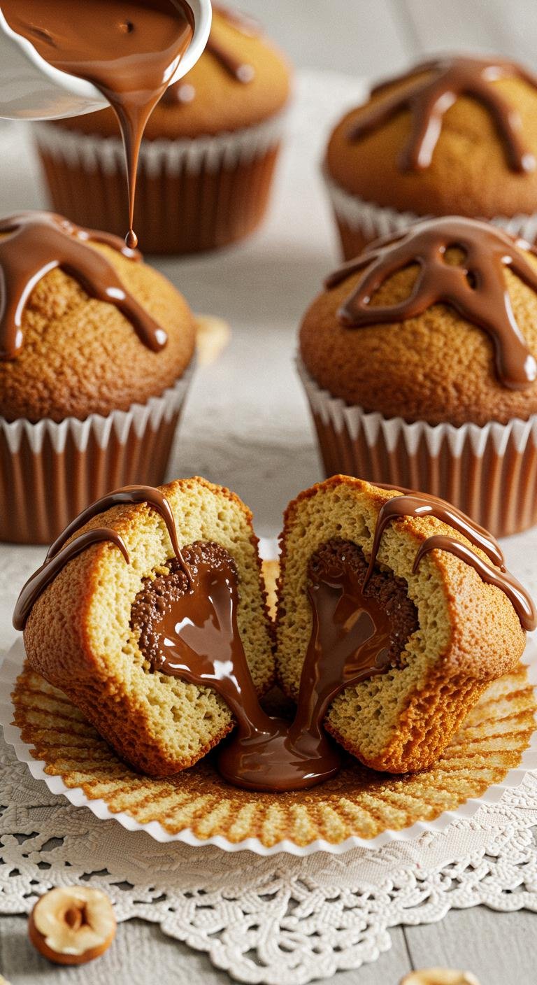 - Place half the batter in each muffin cup, add a spoonful of Nutella, and top with more batter before baking for 20-22 minutes.
