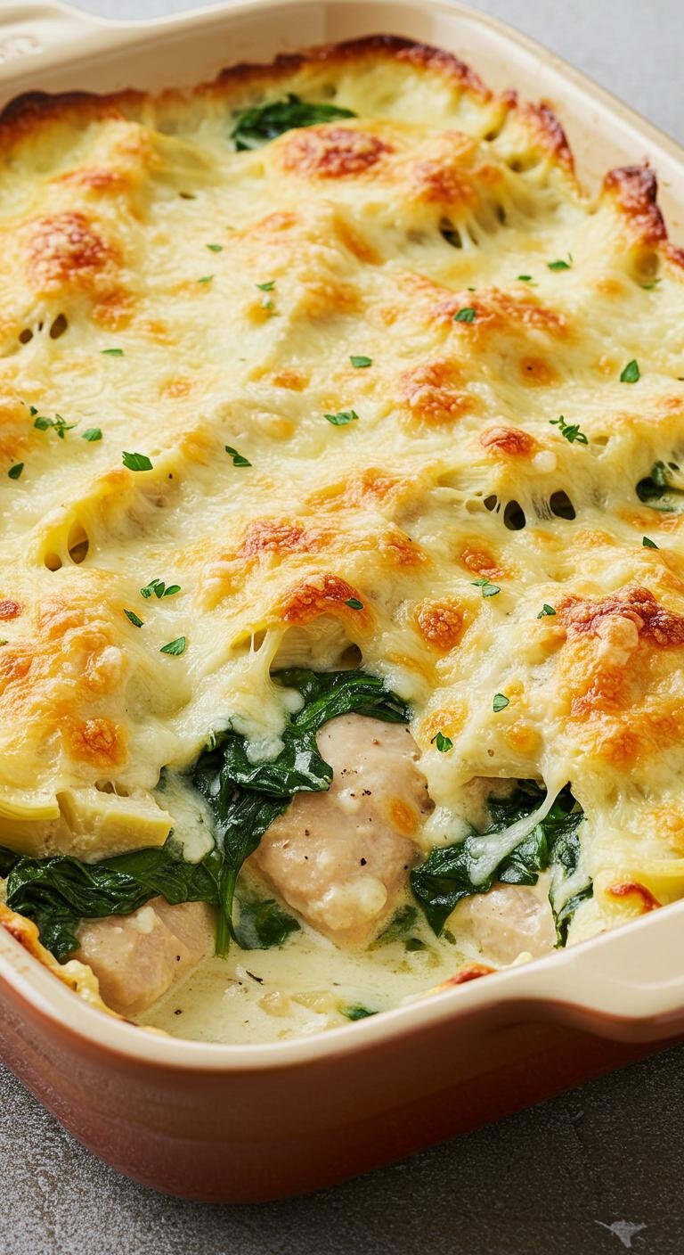 2. Spinach and Artichoke Chicken Alfredo Bake