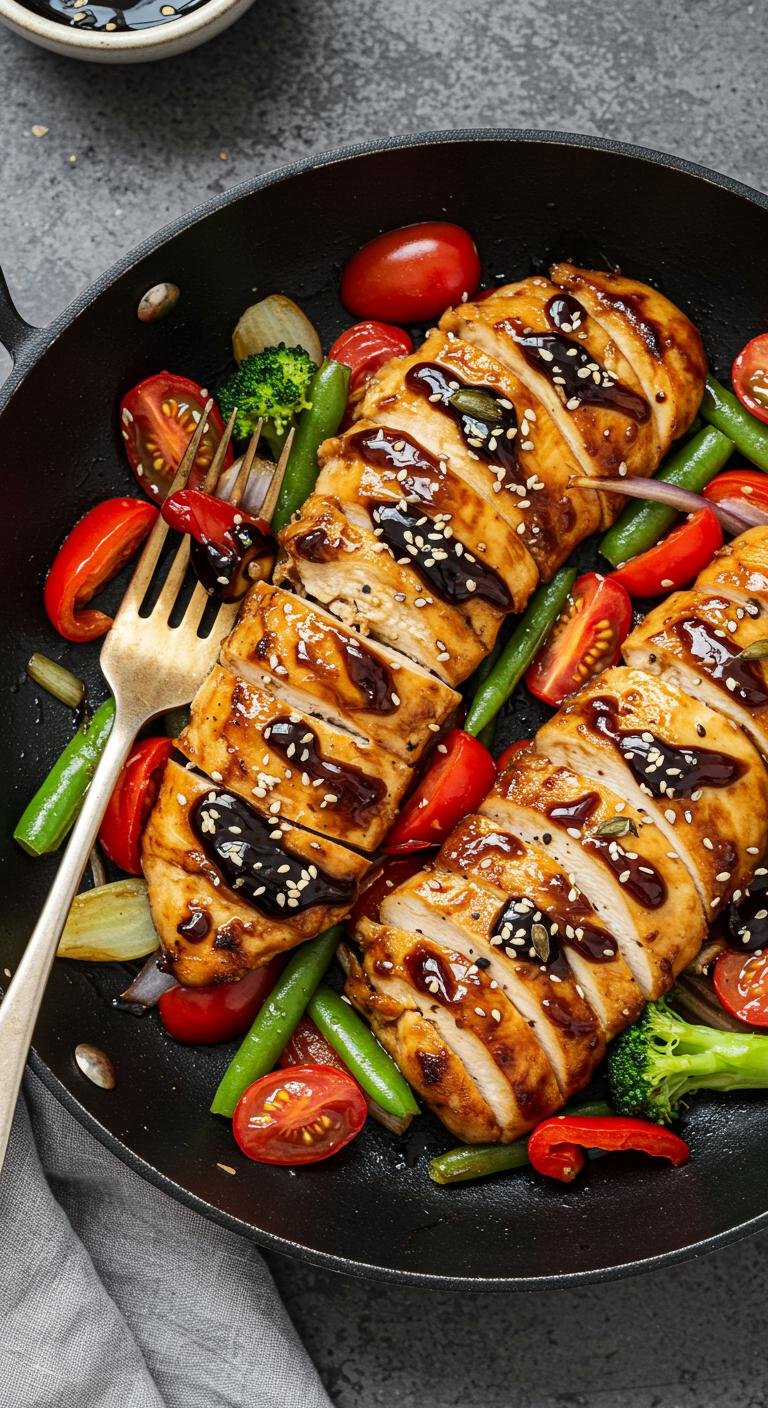 - Mix balsamic vinegar and honey, adding to the pan once chicken is cooked.