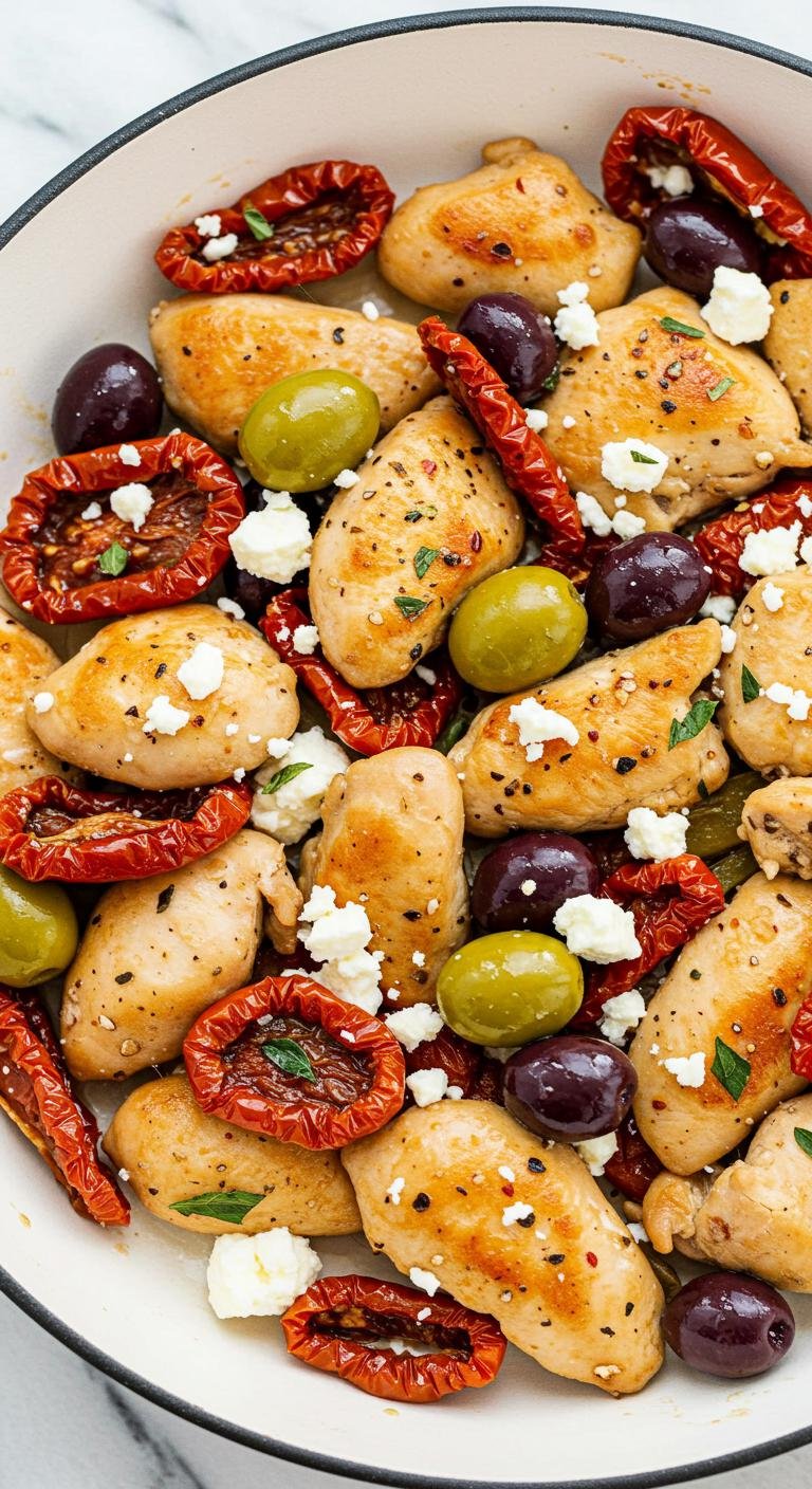 - Heat olive oil in a skillet, add chicken and cook until browned.