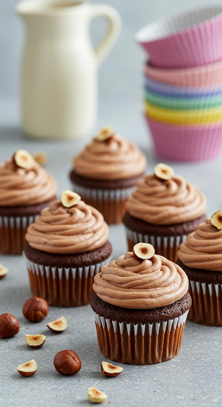 - Mix all ingredients until smooth, then stir in hazelnuts. Pour into liners and bake for 18-20 minutes.