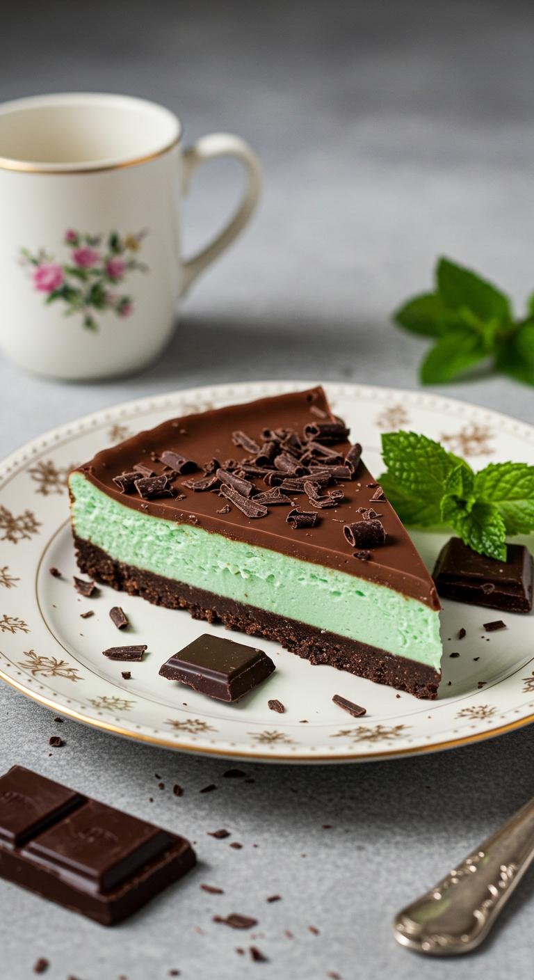 Indulge in the creaminess of cheesecake with a minty twist!