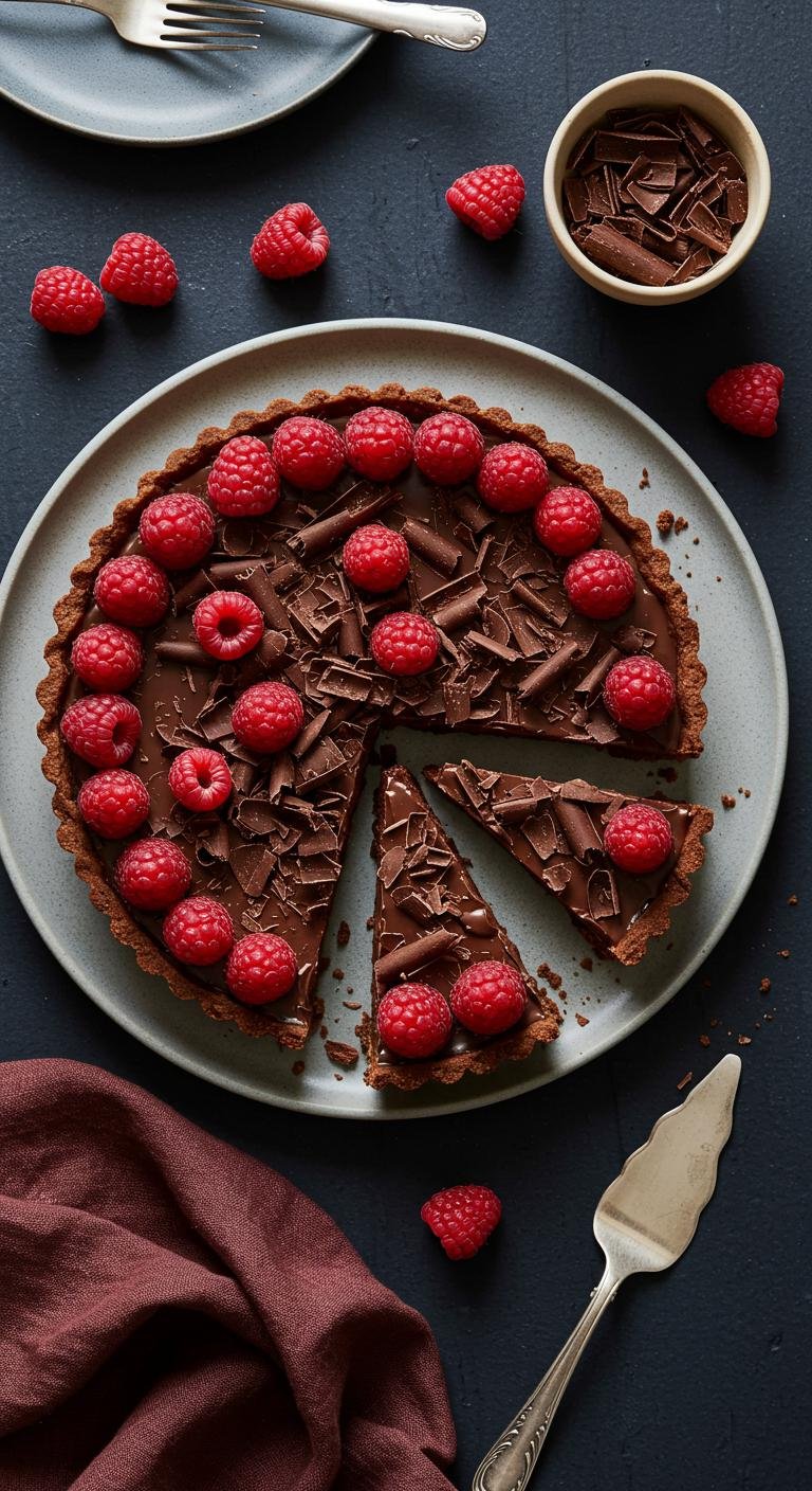 This tart features layers of rich chocolate and fresh raspberry compote that will make every bite a delight!