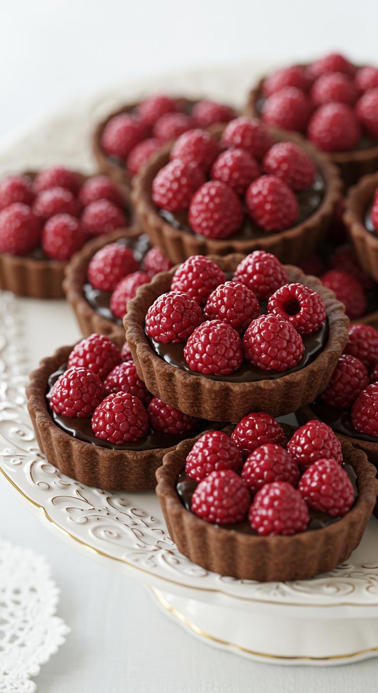 - Pour ganache into the tart shell and refrigerate until set. Top with raspberries before serving.