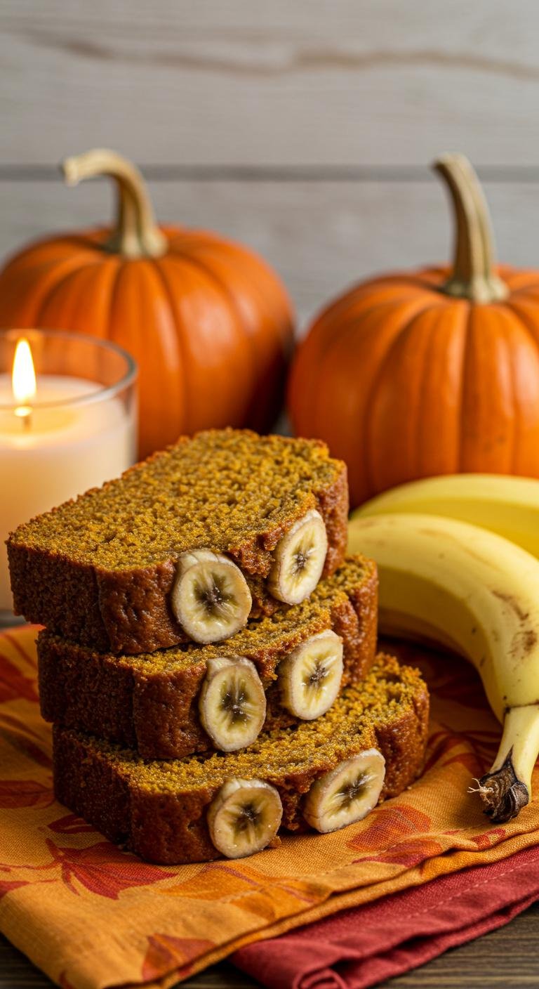 - Combine pumpkin, bananas, sugar, and butter. Mix in eggs, then fold in dry ingredients.