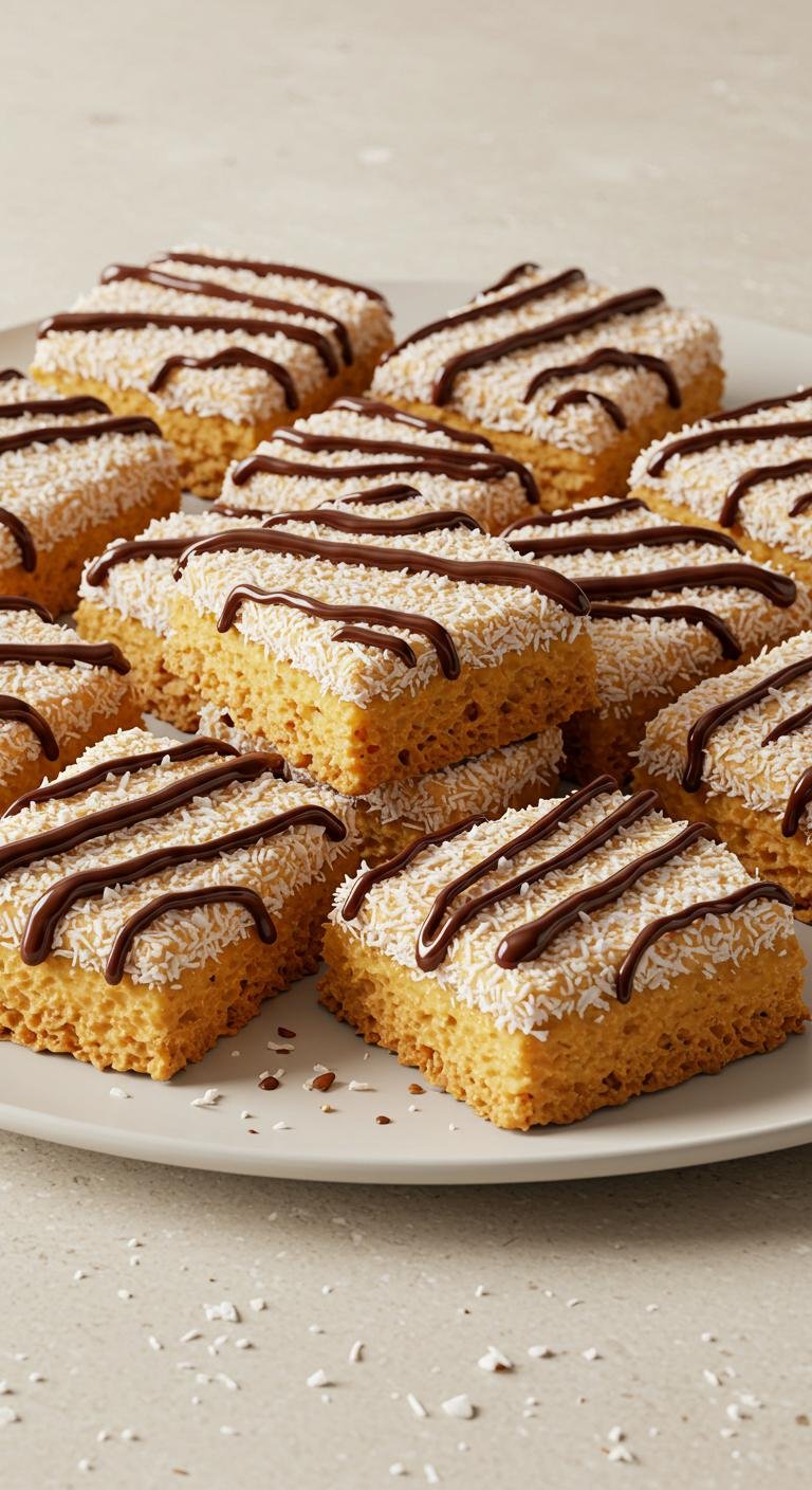- Bake until golden, let cool, and drizzle with melted chocolate before cutting into bars.