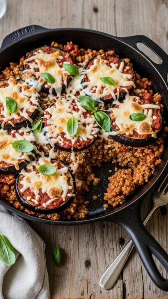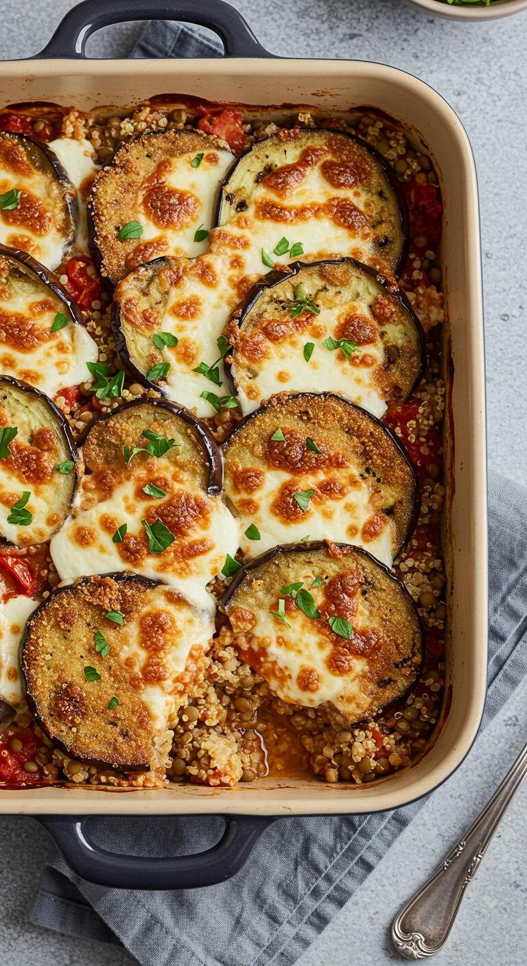 Quinoa & Lentil Eggplant Parmesan