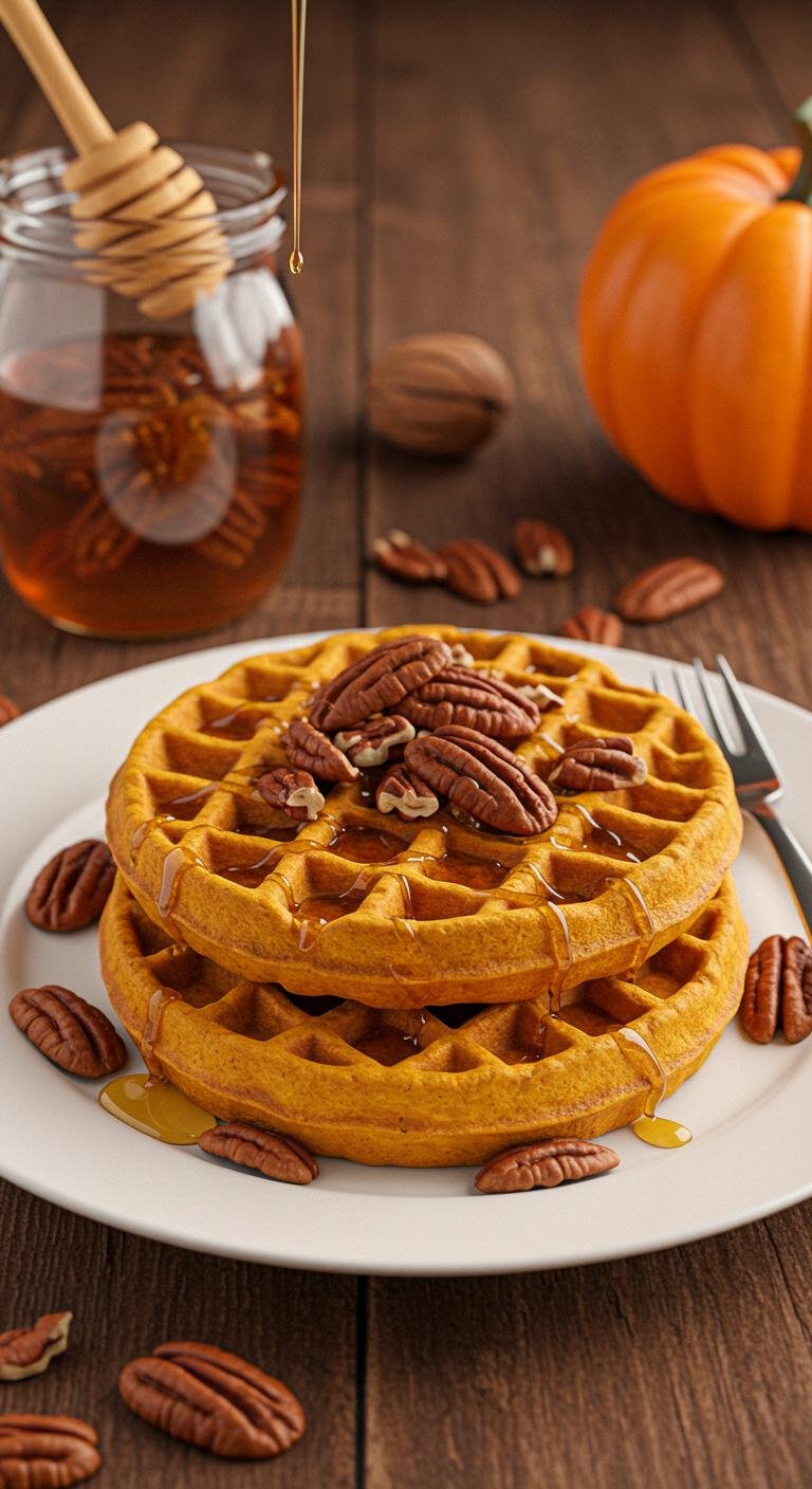Relish the crunch of pecans in these classic pumpkin waffles!