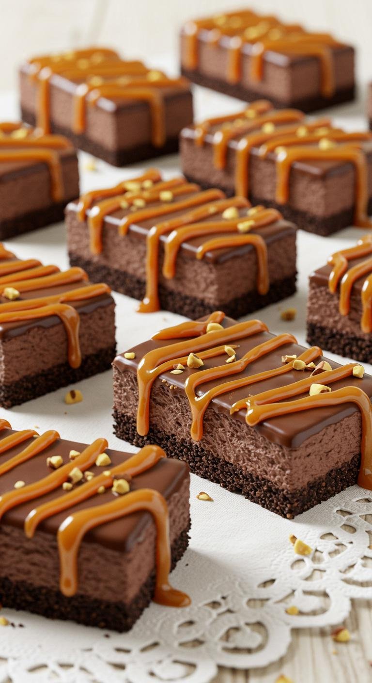 Indulge in these chocolate caramel cheesecake bars for a decadent treat!