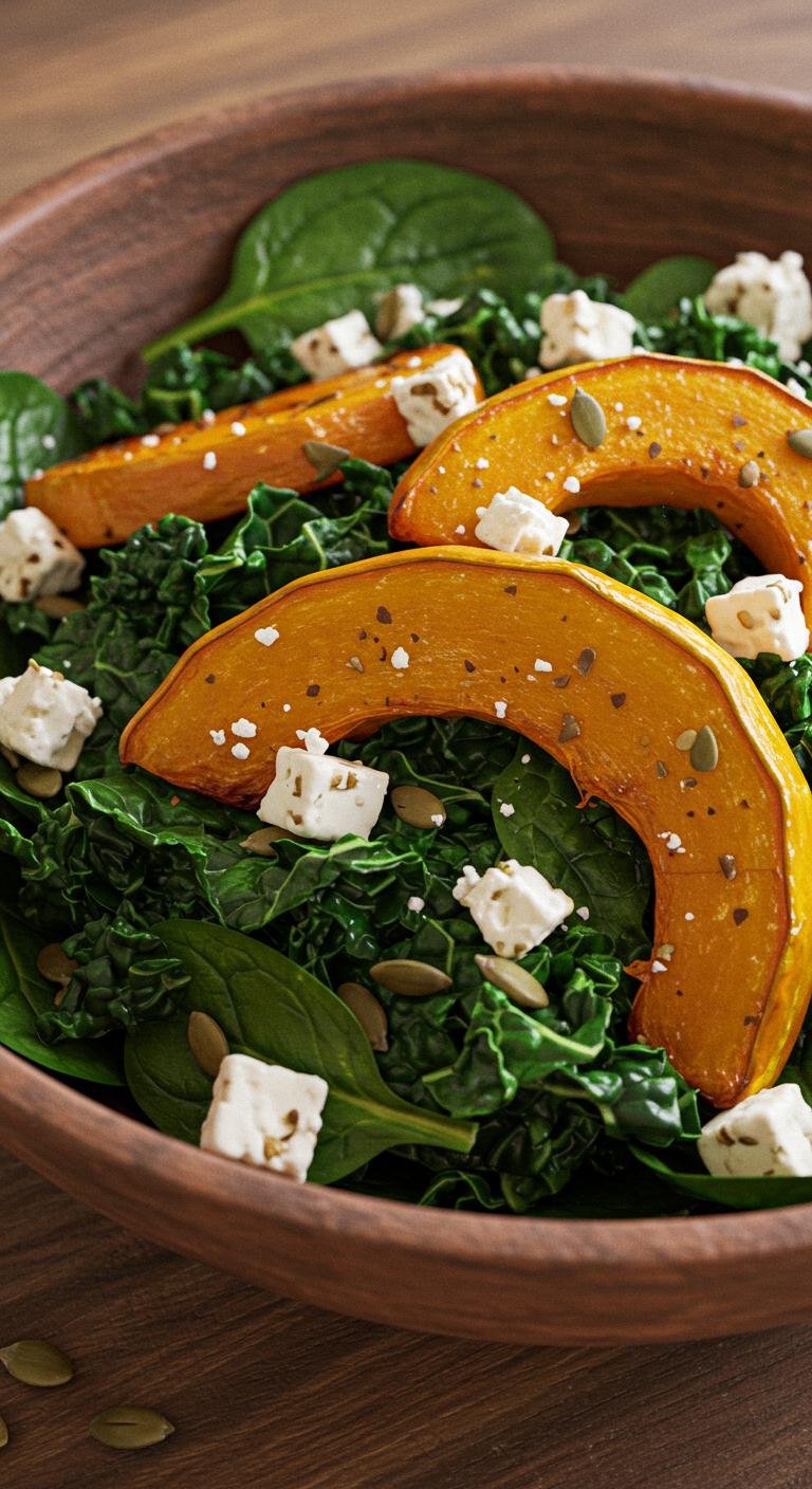 - Combine mixed greens and pumpkin in a bowl.