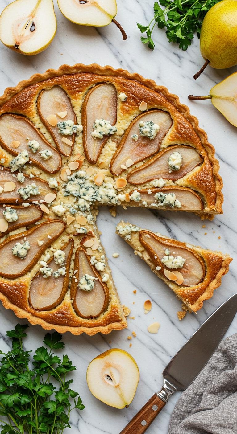 Pear Almond Tart with Blue Cheese