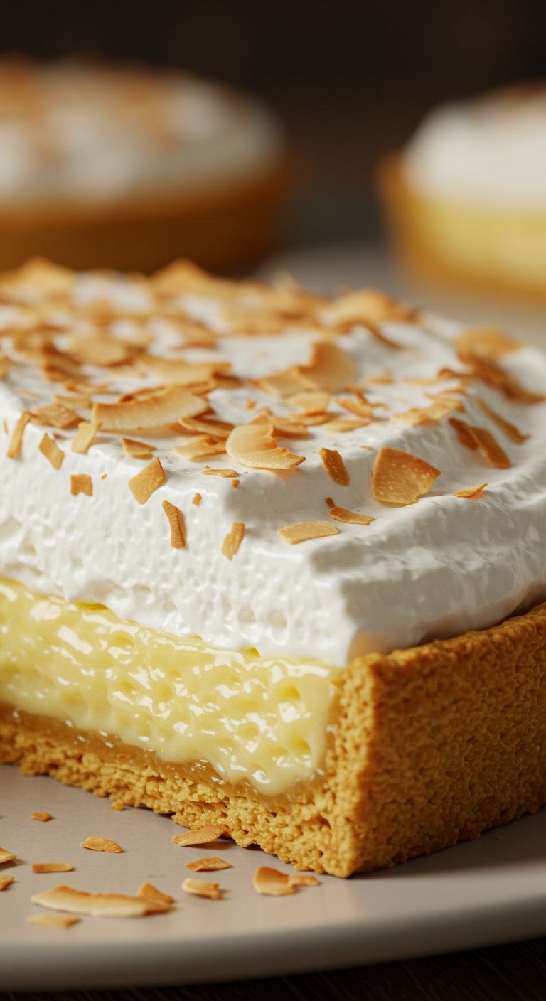 - Fold in heavy cream and pour into the crust; sprinkle with toasted coconut.