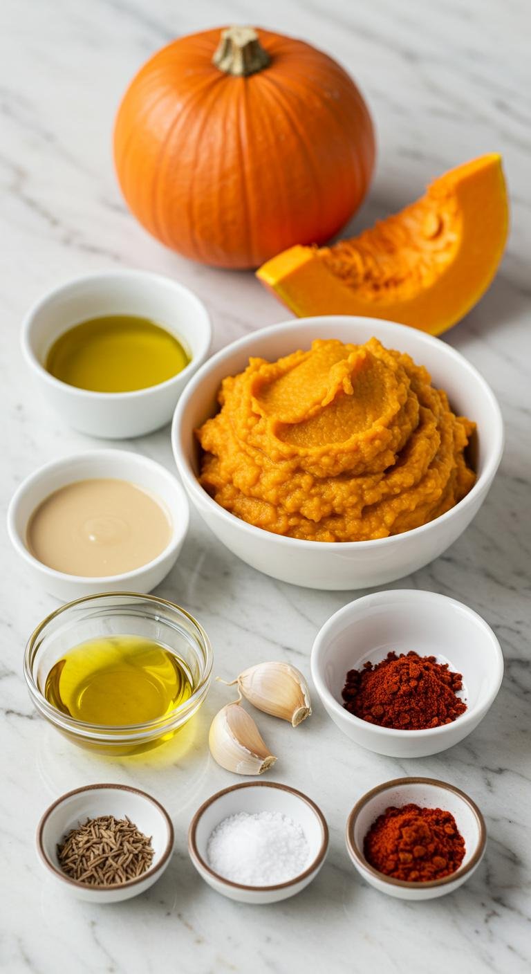 Before diving in, make sure you have these pantry staples ready. Pumpkin hummus is all about balancing earthy chickpeas with the sweetness and warmth of pumpkin and spices.