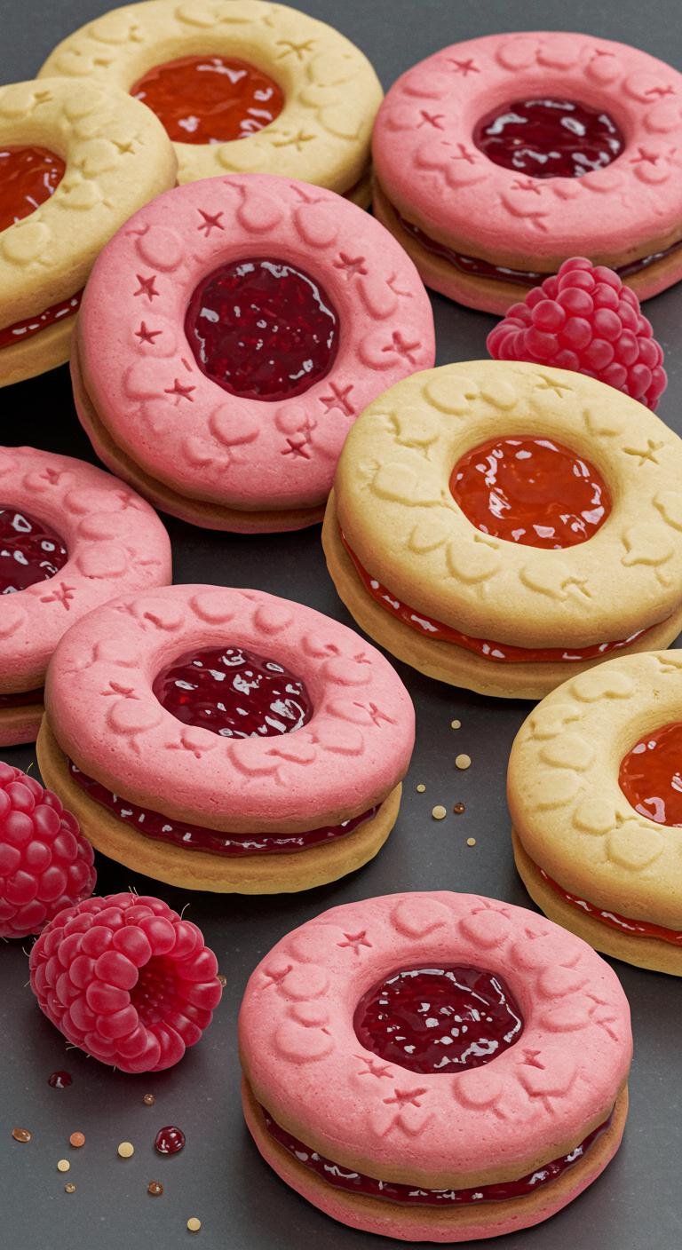 - Cut into shapes, fill with raspberry jam, and bake for 10-12 minutes.