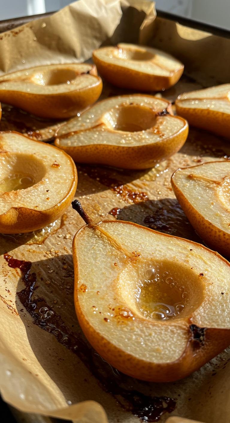 - Roast for about 20-25 minutes until the pears are tender and golden brown.