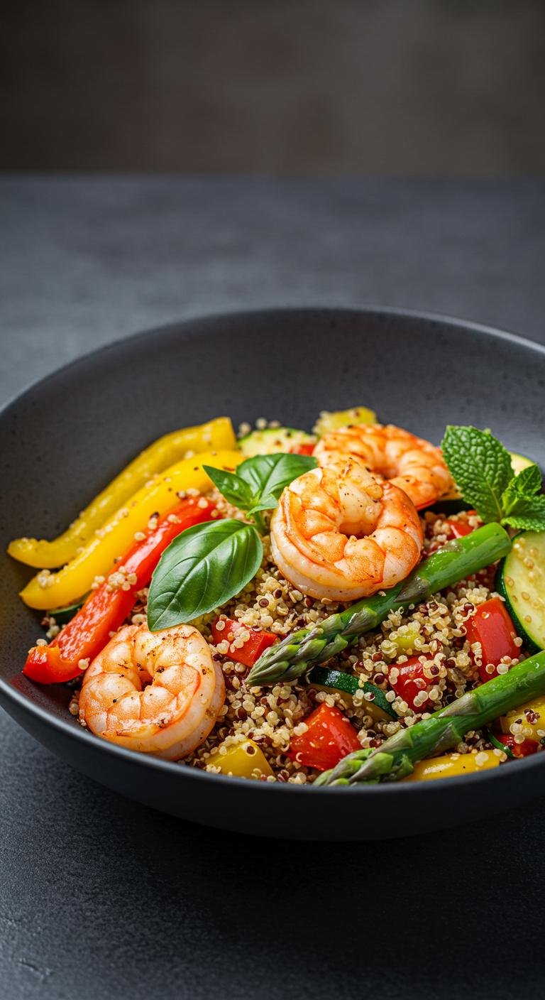 - Sauté shrimp and garlic. Toss with cooked quinoa and bell peppers.