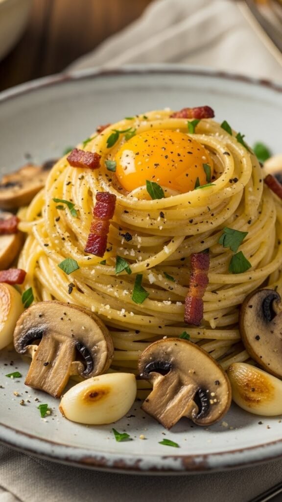 Garlic Mushroom Spaghetti Carbonara