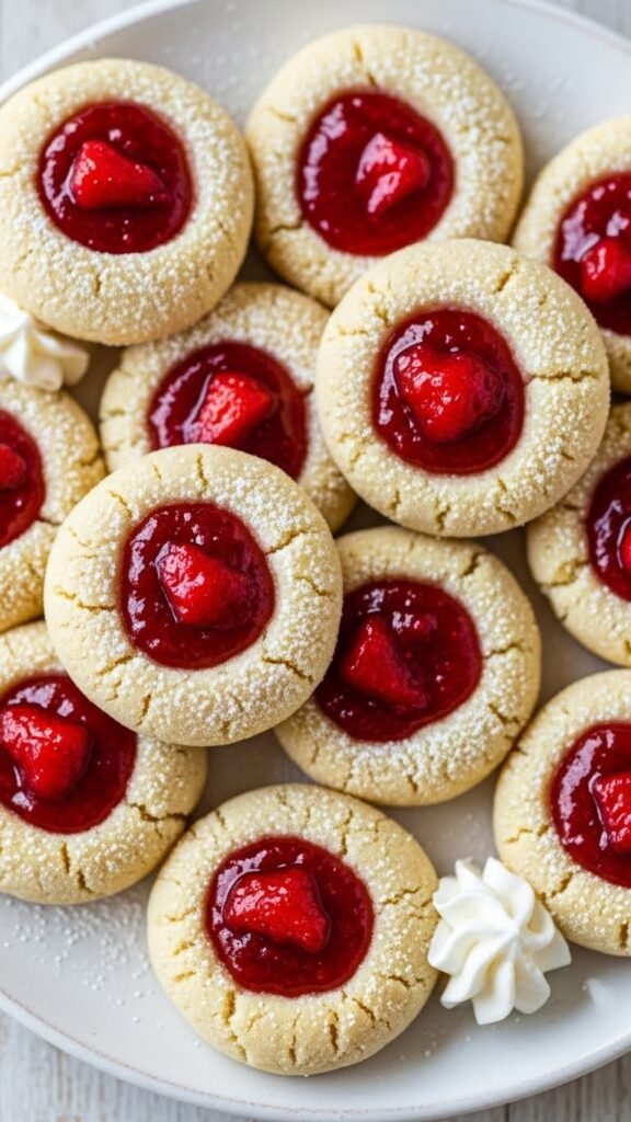 Strawberry Shortcake Thumbprint Cookies