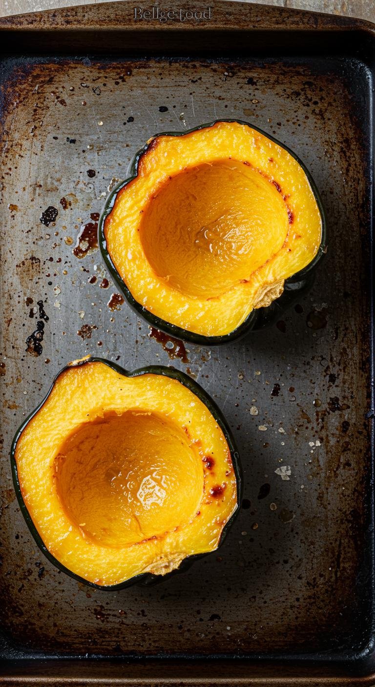 - Bake cut-side down: Place the squash halves cut side down on a baking sheet and roast at 400°F (205°C) for about 30–40 minutes. You want them to be fork-tender but still holding shape.