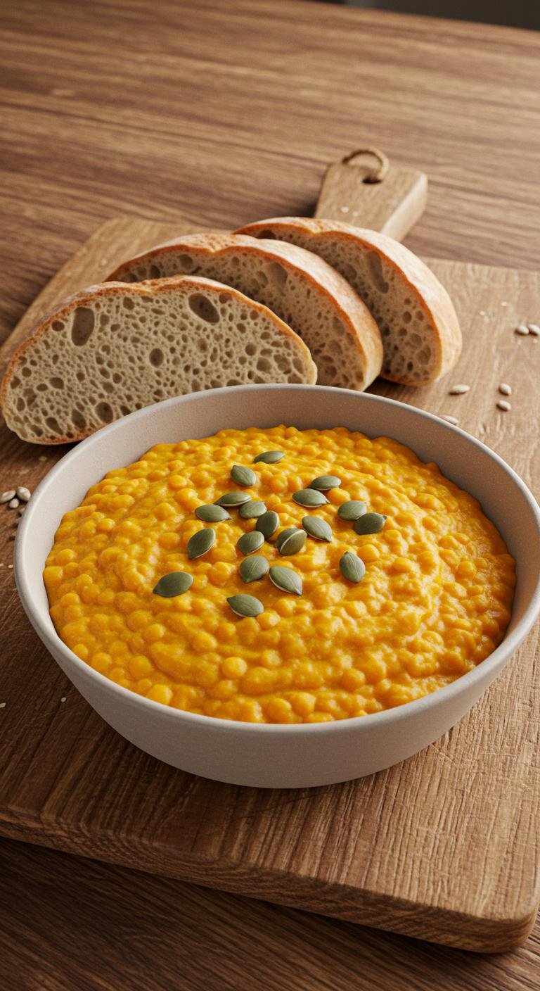 - Add lentils, pumpkin puree, curry powder, and broth; simmer for 20 minutes.