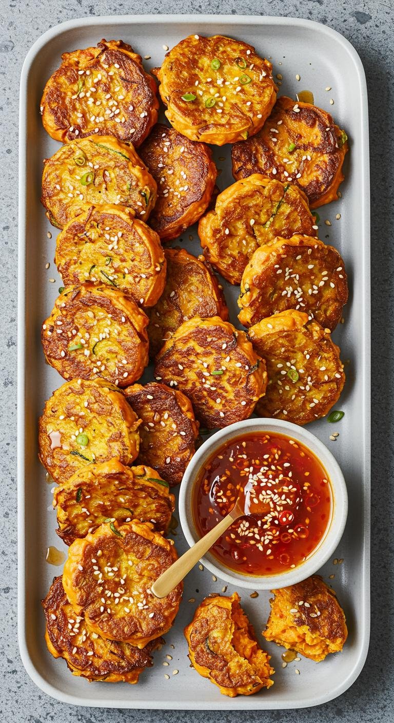 These vibrant fritters combine sweet potato and zucchini for a tasty twist!